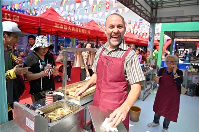 往届欢乐节活动中,外国游客尽情嬉戏。 武昊 摄