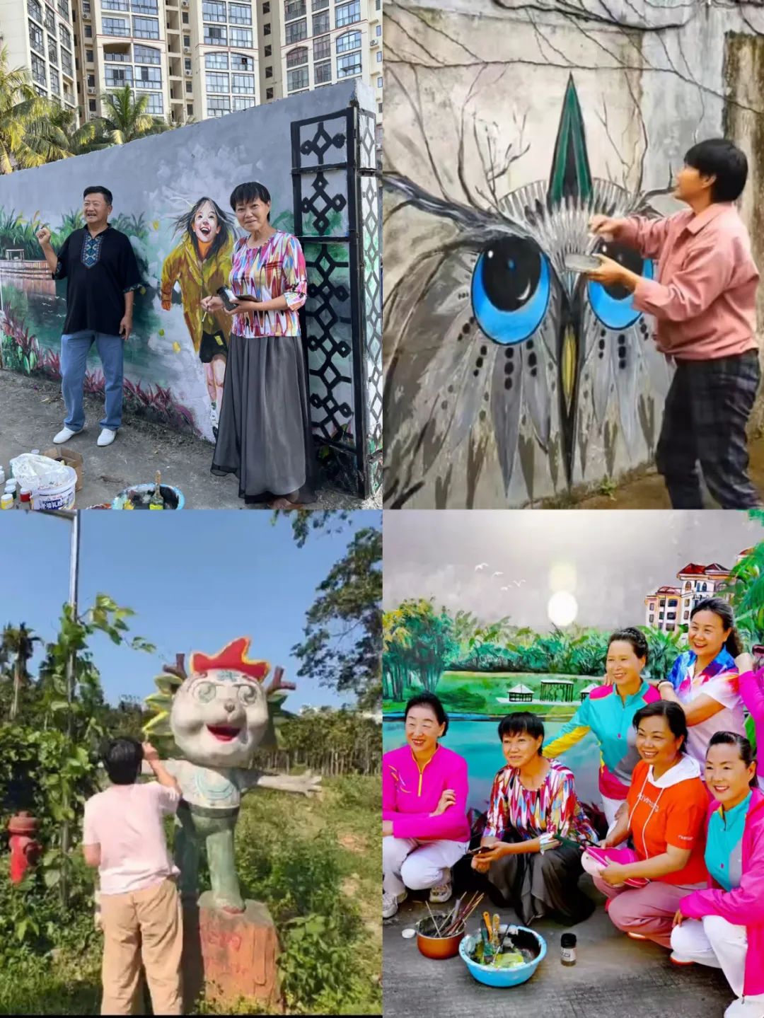 琼中白鹭湖“候鸟”人才工作站,自成立以来始终秉持“以人为本,服务为民”的理念,结合地方实际需求,开展了一系列形式多样的公益活动。近日,为进一步美化社区及镇墟环境,白鹭湖“候鸟”人才工作站书画协会成员吴老师夫妇,主动拿起手中的画笔,历经7天的时间绘就出一副副美丽图景。一笔一画勾勒美,一点一描绘色彩,让原本普通老旧的垃圾投放点墙面、褪色的吉祥物“奔奔”摇身一变,成为片区内“打卡”点。不仅美化了社区环境,更营造了共建共治共享的浓厚氛围。